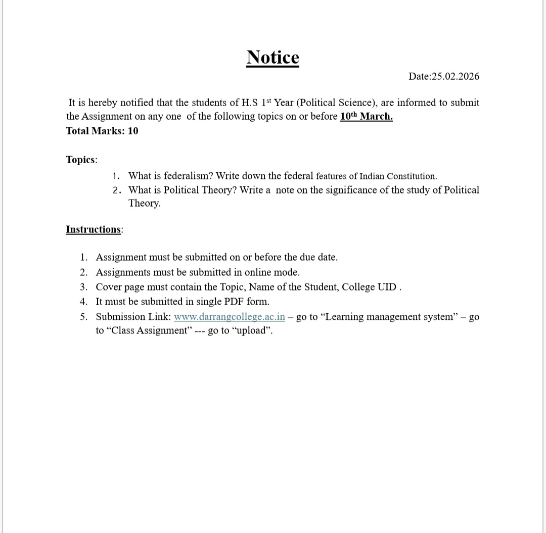 | Active | RAINY SAIKIA | HS 1ST YEAR ARTS | POLITICAL SCIENCE | Political Science H.S first year | 2026-03-15 | View Upload |